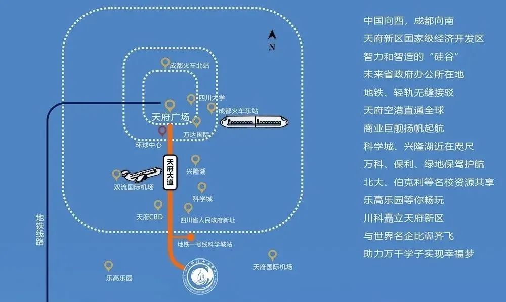 选择新一线城市 拥抱更广阔平台!四川科技职业学院升学部(中职部)位于天府之国四川成都天府新区,智力和智造的“硅谷”,未来省政府办公所在地,未来三年,这里就是你的地盘。地铁、轻轨无缝接驳,天府空港直通全球,商业巨舰扬帆起航。
