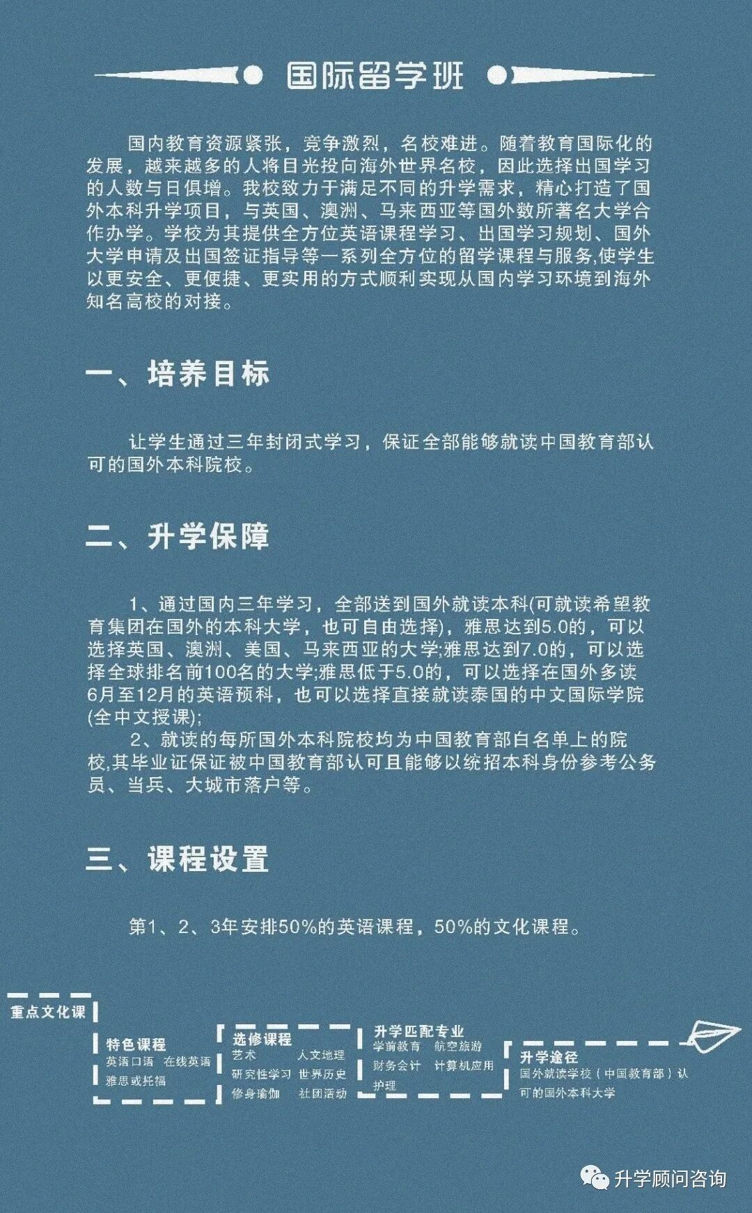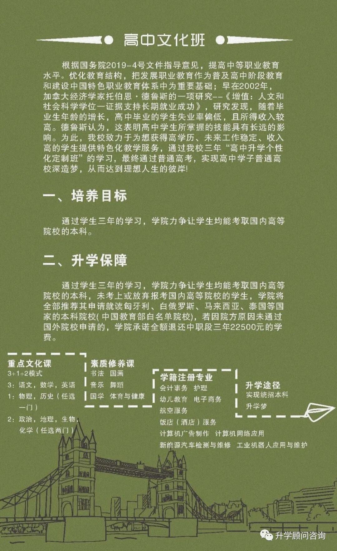 学校与国内多所高校构建高学历人才培养“立交桥”,在美国、英国、澳大利亚、马来西亚等国举办或合作多所大学,为学生提供了国内全日制统招高等院校、国外知名大学的就读机会,助力学生升入更高学府学习创造了良好条件,现开设有本科升学、艺体升学、国际留学定制班。