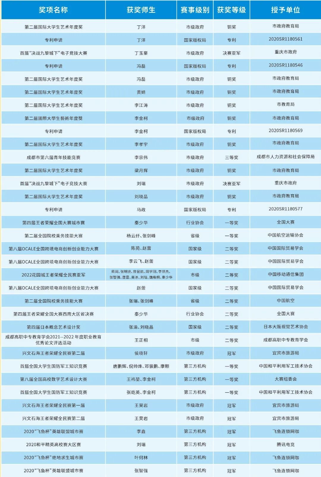 仅2023年,我校师生全年获得奖项近百余个。其中,获得国家级奖项52个,省级奖项30个,市级奖项17个。