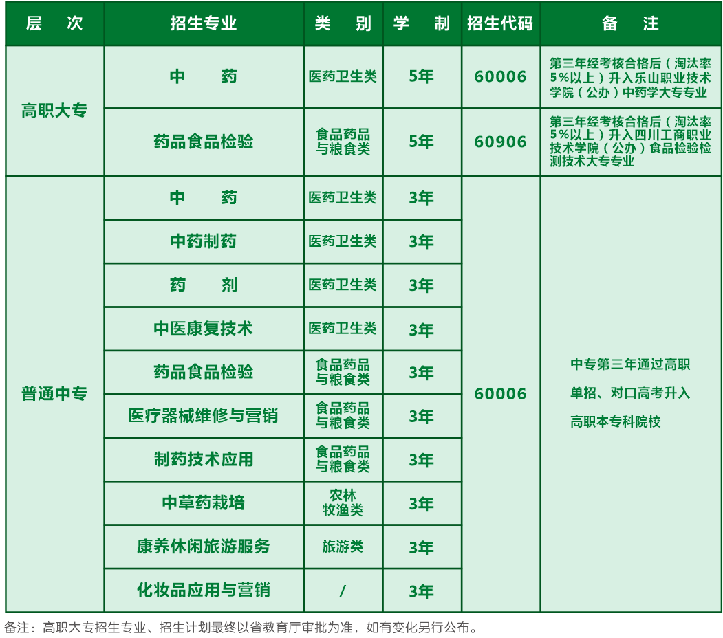 升学渠道3:成人本专科。我校系中国药科大学、成都中医药大学、四川中医药高等专科学校的成人本科、专科教学点,学生可通过全国成人高考取得本专科文凭。