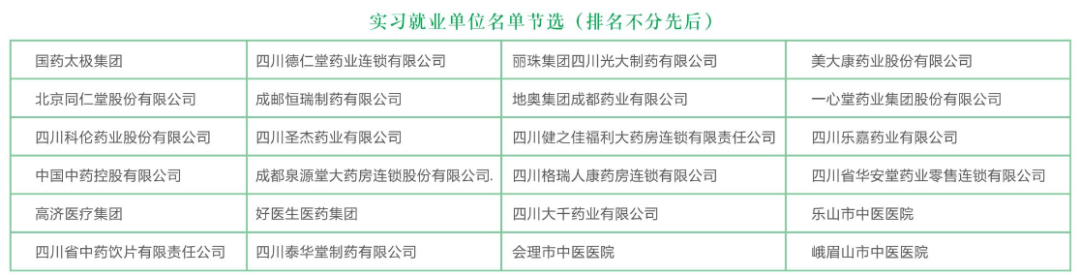 与国药太极集团、科伦集团、高济医疗集团等知名企业保持长期紧密合作,毕业生供不应求,就业率一直保持在98%以上,就业品质高。