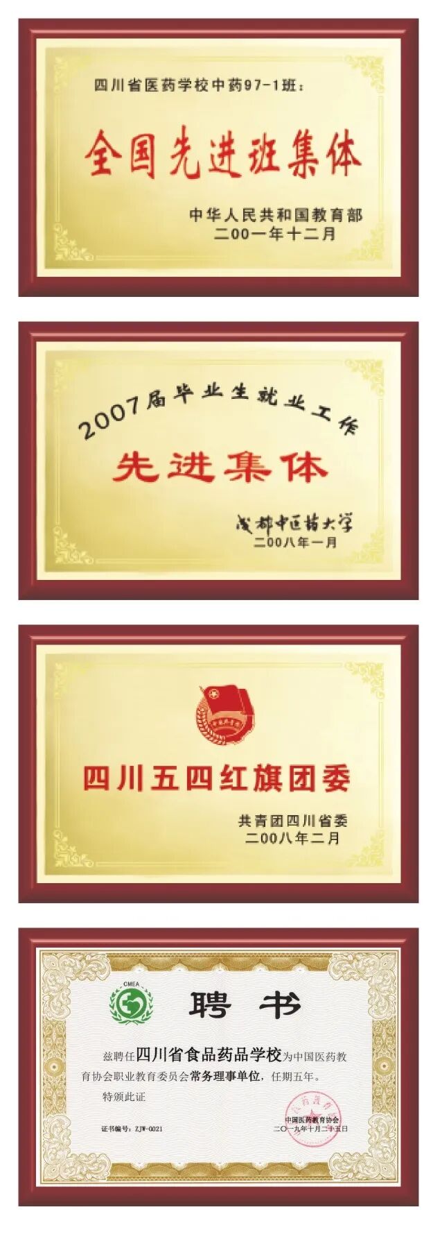 国家级重点中专、四川省示范中等职业学校、国家中医药行业龙头学校、国家和四川省中医药文化宣传教育基地、四川省首批“三名工程”(名校、名专业、名实训基地)建设学校。
