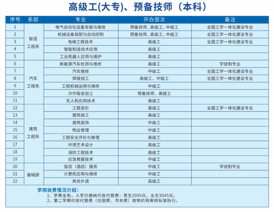 ★预备技师班毕业生入伍时享受全日制本科同等待遇,高级工班毕业生入伍时享受全日制大专同等待遇。