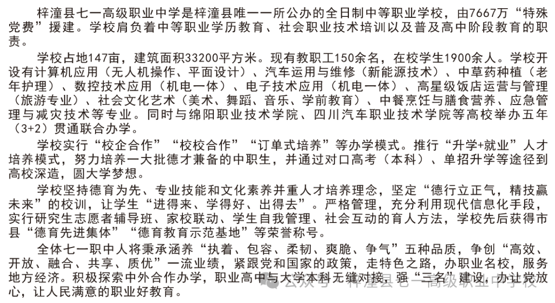 - 2024-01-01 梓潼七一高级职业中学校2024年招生简章