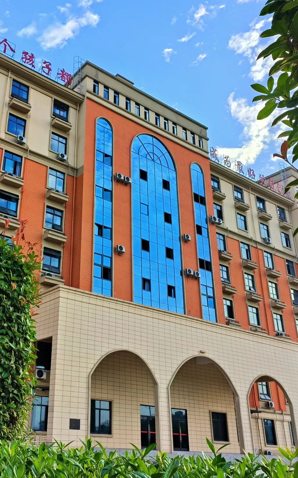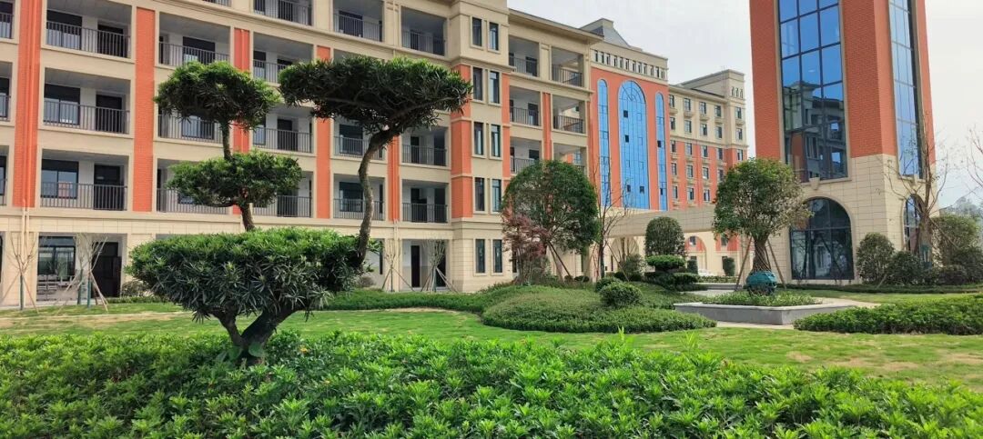 校园根据现代优质综合高中要求进行高标准设计,教室、食堂、宿舍、标准运动场等空间宽敞明亮,优雅舒适。全校师生采取封闭式管理模式,学生一日三餐均由专业营养师设计,专人采购监管,确保食材新鲜、营养均衡、合理膳食。学生宿舍是公寓式标准间,通常一室六人,室内都有卫生间、洗漱间、衣柜、空调、热水器等设施,每个楼层设有盥洗间,盥洗间内配置公共洗衣机若干台。班主任、值班教干和生活老师全天候跟踪服务,关心每个学生的学习、生活和安全,使学生始终有一种居家的舒心、暖心、安心感觉。