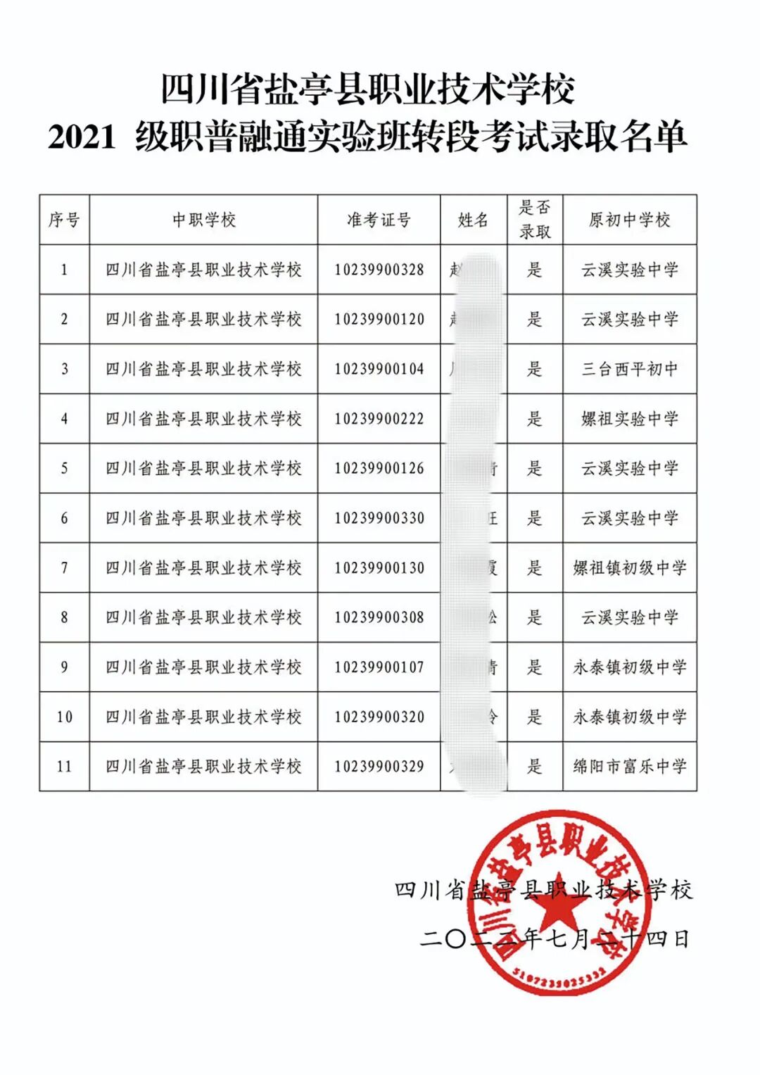 - 2023-12-27 盐亭县职业技术学校2023年招生录取分数线