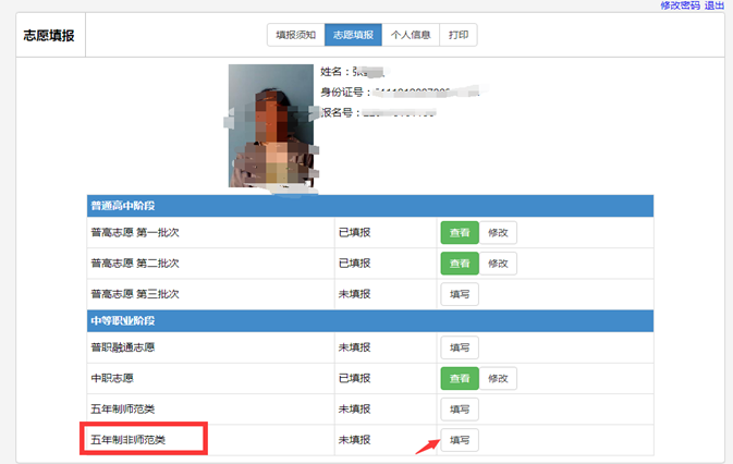 五年制大专填报流程示例