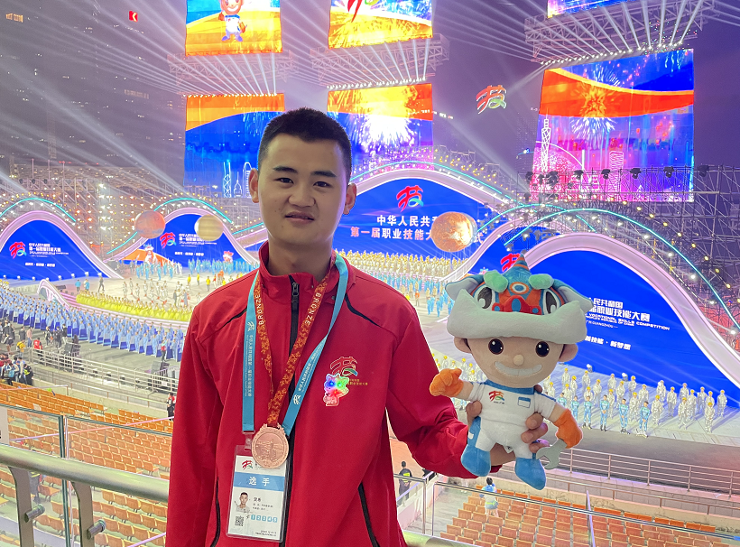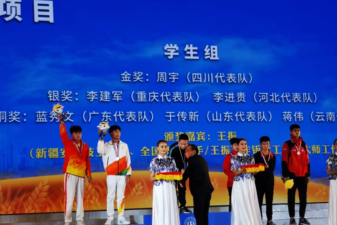 而来自工程造价专业的周宇也同样在各种技能大赛上散发着自己的光芒。先后获得第一届全国职业技能大赛优胜奖;2020年青年赛砌筑项目一等奖;第46届世界技能大赛选拔赛一等奖;四川省“川建工”杯三等奖。更是在2021年全国乡村振兴职业技能大赛上一举斩获砌筑工项目(学生组)金牌。