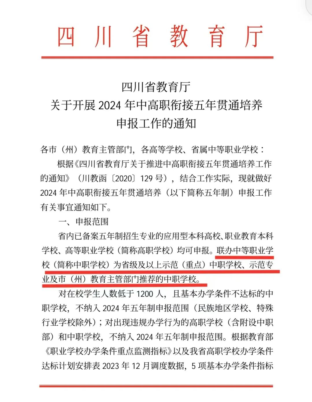 五年高职是指,初中毕业生进入中职学校学习,学生前三年纳入中等职业教育,在中职阶段学习期满,应进行适当考核,经考核合格后后两年转录高职阶段继续学习。这也就意味着进入了中职,一条腿就已经迈入了高职院校的大门,后续还可继续专升本、考取研究生。目前只有省内少数优质中职学校得到省教育厅批准招收五年制全日制大专学生。