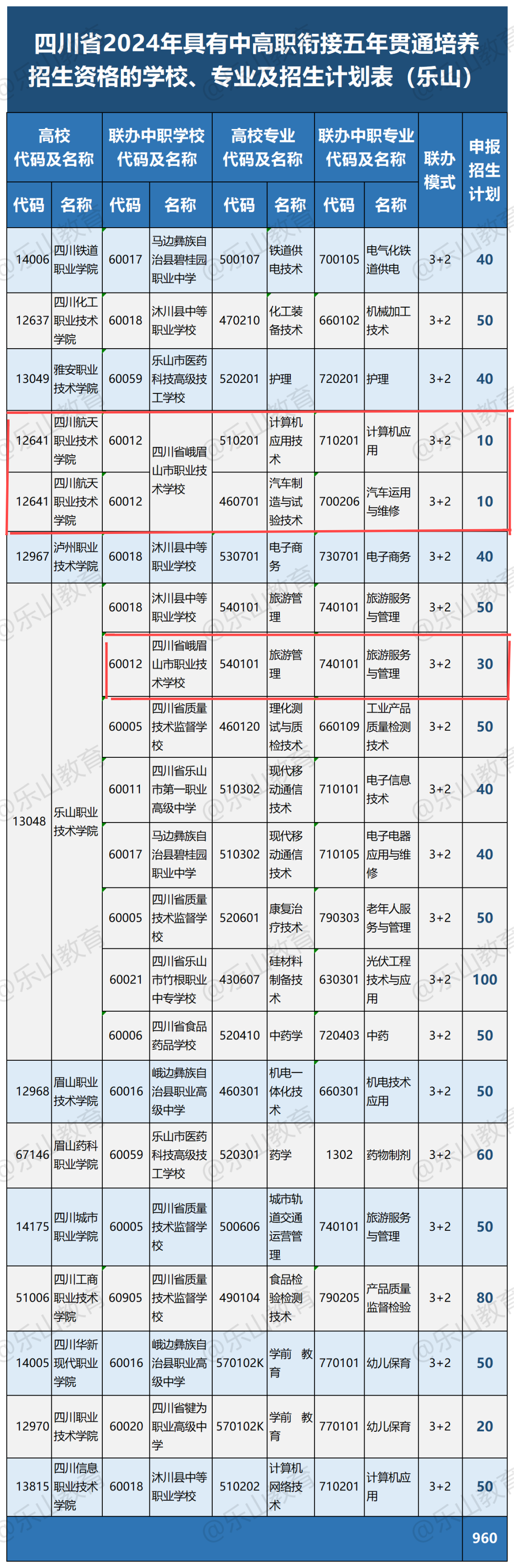“3”是指在我校就读中职三年,2是指到对应的大学就读两年,我校有3个专业可以报读五年一贯制(3+2)大专,分别是:四川航天职业技术学院计算机应用(仅有10个名名额)、汽车运用与维修专业(仅有10个名名额);乐山职业技术学院旅游服务与管理专业(仅有30个名名额),以上两个都是优质公办大学。中职第六学期转录,不需要参加高考,其报考办法是,学生中考以后,在乐山招生考试网上填报对应学院及专业,需达到其录取线方可以录取。