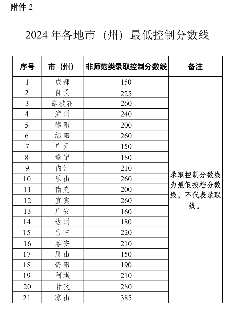2.2024年各地市(州)最低控制分数线