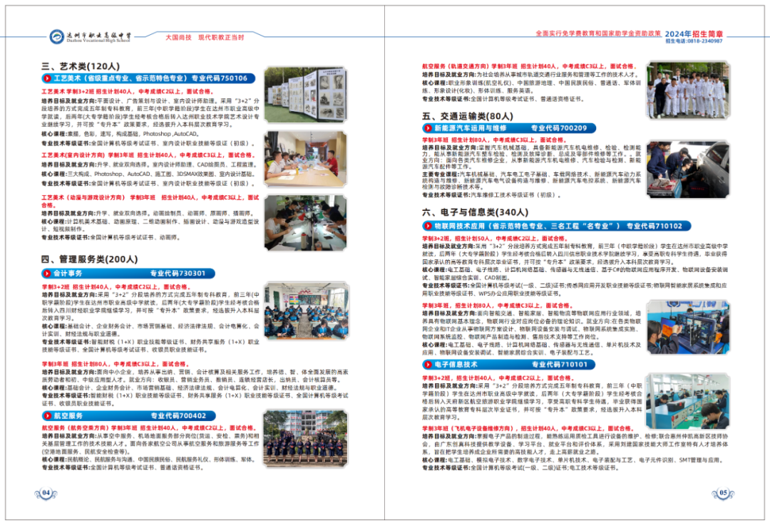 达州市职业高级中学开设专业和班型: